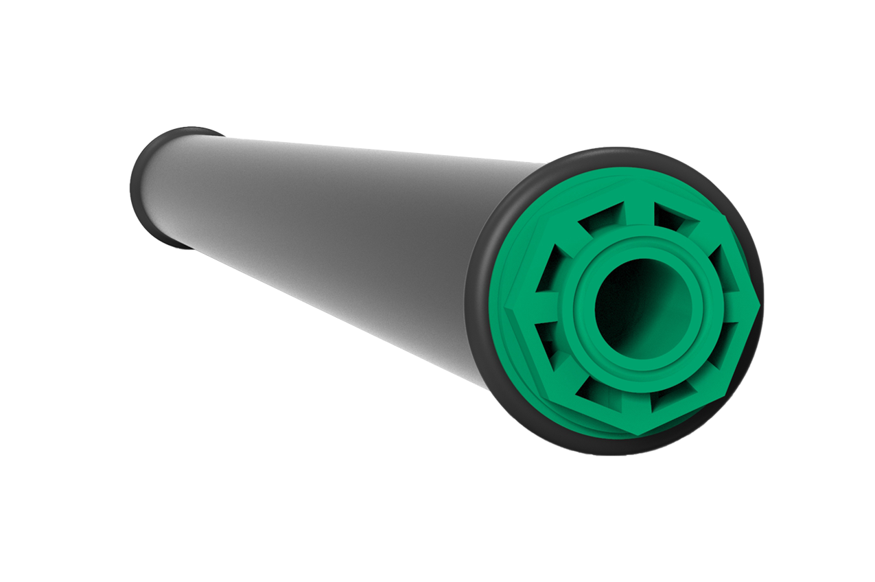 3、支撑管采用玻纤增强 PP 材料,支撑管的上下部有 2 个凹槽和 4 个进气口,能保证在低压力损失的情况下将空气均匀分布于整个膜片,使曝气器在污水处理运行时更经济(节能),且具有更长的使用寿命。